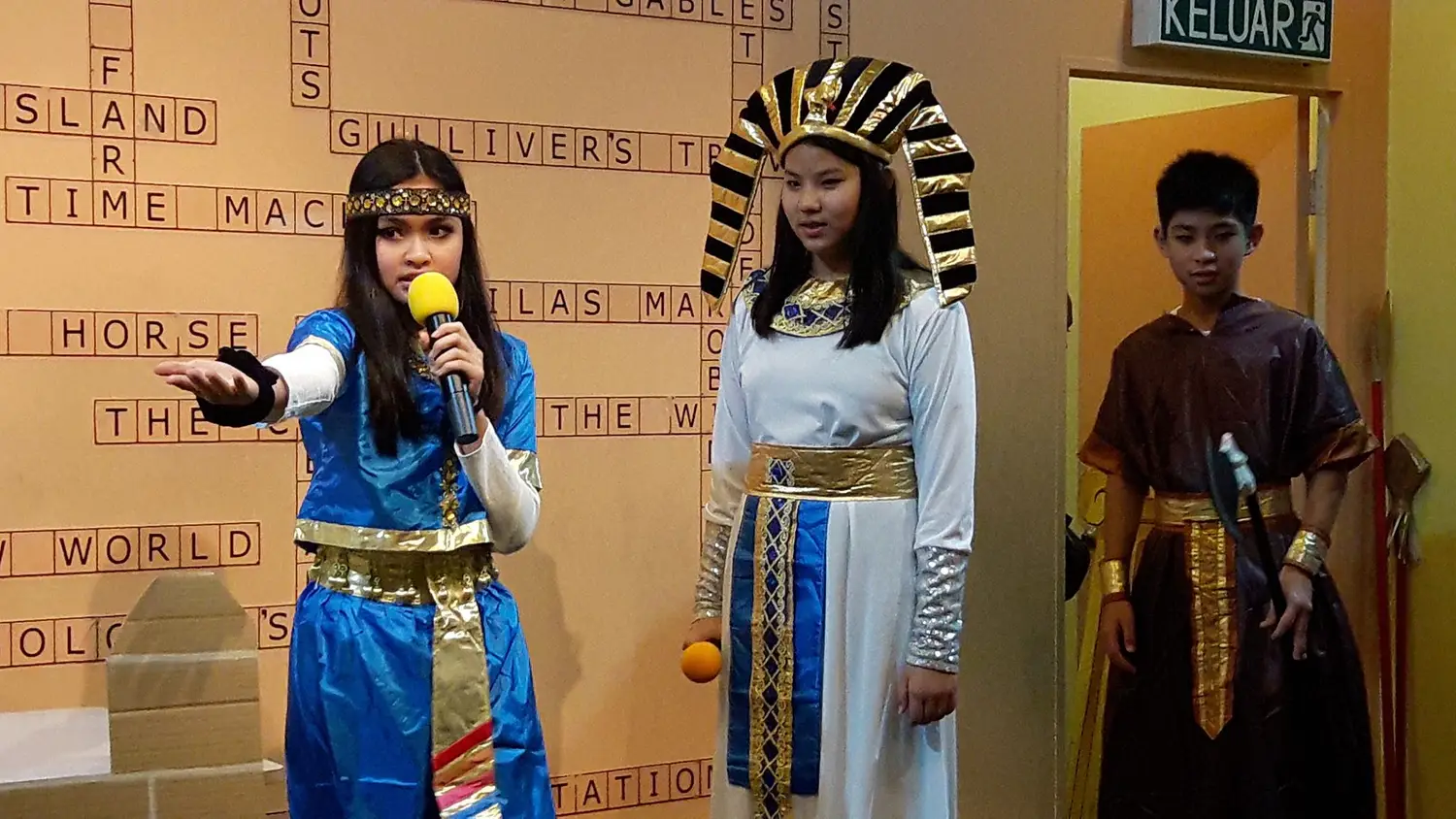 Students are introduced literary devices such as metaphor, personification and alliteration, and use them in their creative essays. At this level, they are exposed to narrative, descriptive, persuasive writings, and they would have developed their own style of writing. They will read unabridged story books such as Narnia series, Harry Potter series, Oliver Twists, Tales of Greek Heroes and Norsemen Mythology. They also act the storybook characters in the drama at the Year-end Performance.